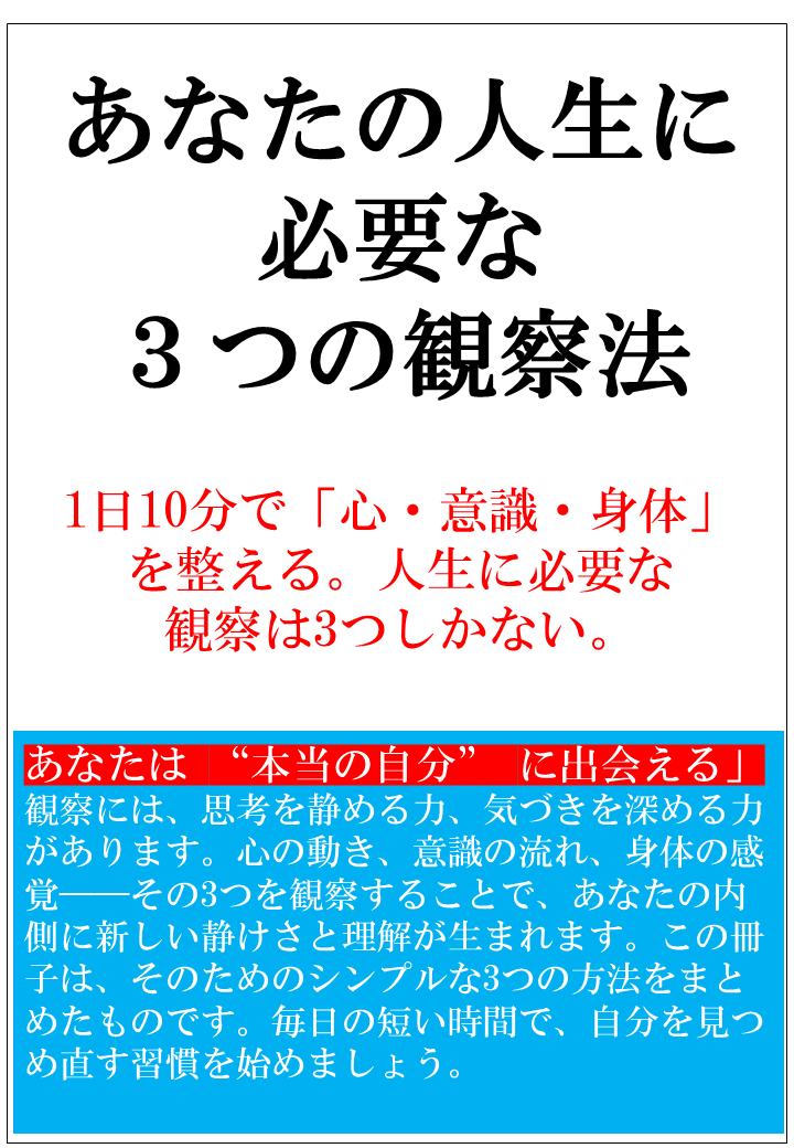 紹介されている3つの観察法は、すぐに実践できて、思考や感情の動きを自然に感じ取れるようになります。
